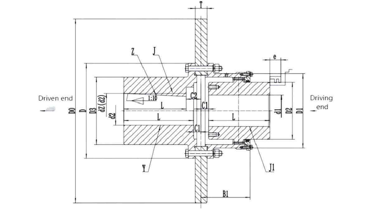 Normal şartlar altında GAP tipi kaplin GBZ ve GAZ tipi kaplin çifti olmalı, dış diş manşonu ucu ara mil ile bağlanır ve yarım kaplinin iki ucu sırasıyla çalışma makinesi mili ve güç makinesi mili ile bağlanır. Fren diski yarım kaplin ile bağlı olduğundan, fren diskinin ağırlığı ve çalışan fren yükü ve titreşim tamamen yarım kaplin tarafından taşınır, bu da frenleme sırasında kampanalı dişlerin birbirine geçme performansını artırır, bu nedenle ağır işler için uygundur ve nominal tork 630- 112000N·m'dir.