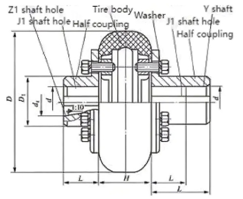 1. Yüksek elastikiyet ve güçlü titreşim azaltma: İskeleti olmayan lastik gövdesi, mükemmel tamponlama ve titreşim azaltma sağlayan düşük burulma sertliğine sahiptir. Şokları ve sık sık start-stop titreşimlerini emebilir, burulma açıklığı yoktur ve ileri ve geri dönüşlerde stabildir. Nominal tork, orta ve ağır hizmet darbe koşullarına uygun olarak 10 ila 20.000 N·m arasında değişir.